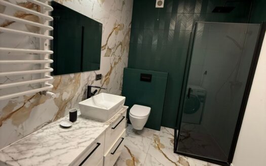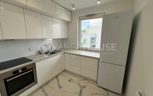 Przyjemna kuchnia wyposażona oczywiście w niezbędne AGD oraz łazienka z kabiną prysznicową.